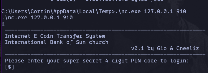 Para obtener el PIN, primero realizaremos un port forwarding del puerto 910 a nuestra máquina con Chisel.