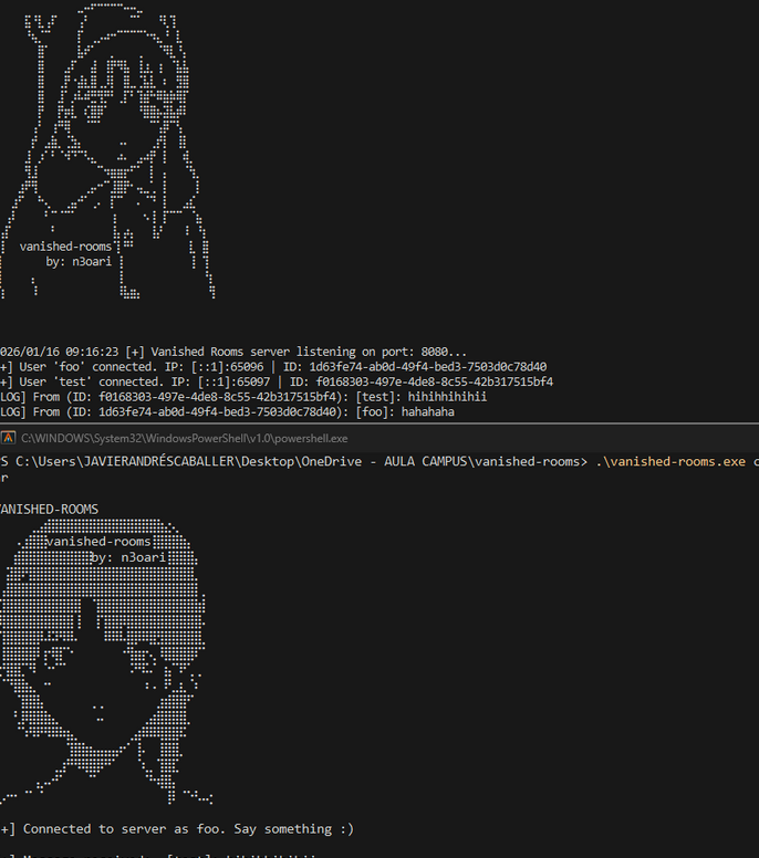 Vanished Rooms is a high-privacy, CLI-based messaging application developed in Go. It is designed to provide users with a secure, room-based communication environment where anonymity and data persistence are eliminated by design.